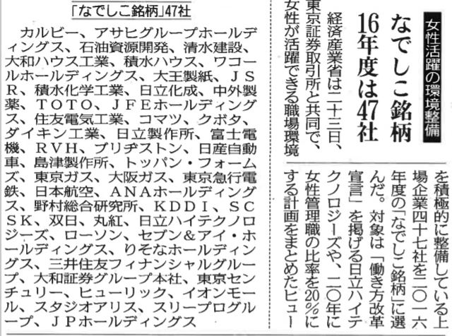経済産業省が実施する「なでしこ銘柄」と「新・ダイバーシティ経営企業100選」に 選ばれた企業の紹介があります。 日吉は「新・ダイバーシティ経営企業100選」に選出された中部の企業として 掲載されました。