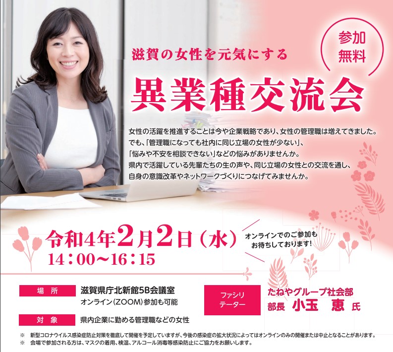 【総務課長 大角登壇】「滋賀の女性を元気にする異業種交流会」のご案内