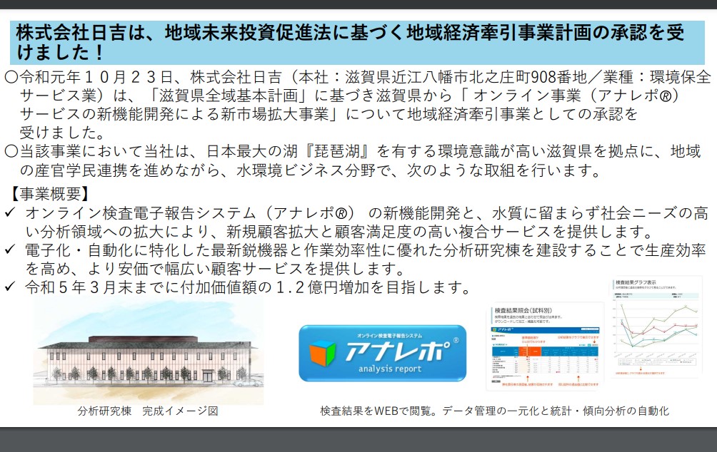 この度、近畿経済産業局ホームページへ「地域未来投資促進法」の非製造業での活用の事例として日吉が掲載されました。