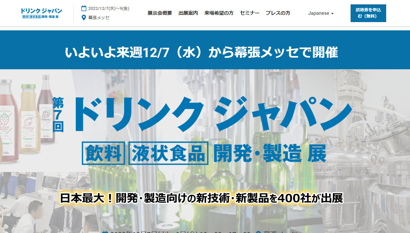 第7回ドリンクジャパン出展のお知らせ