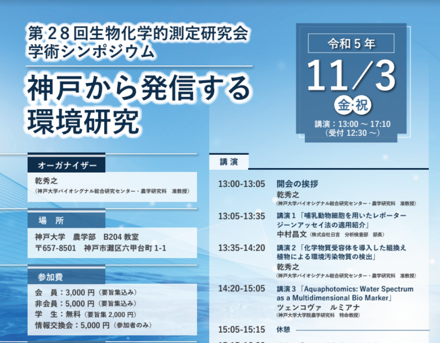 当社が加入する生物化学的測定研究会”第28回 学術シンポジウム”のご案内です。