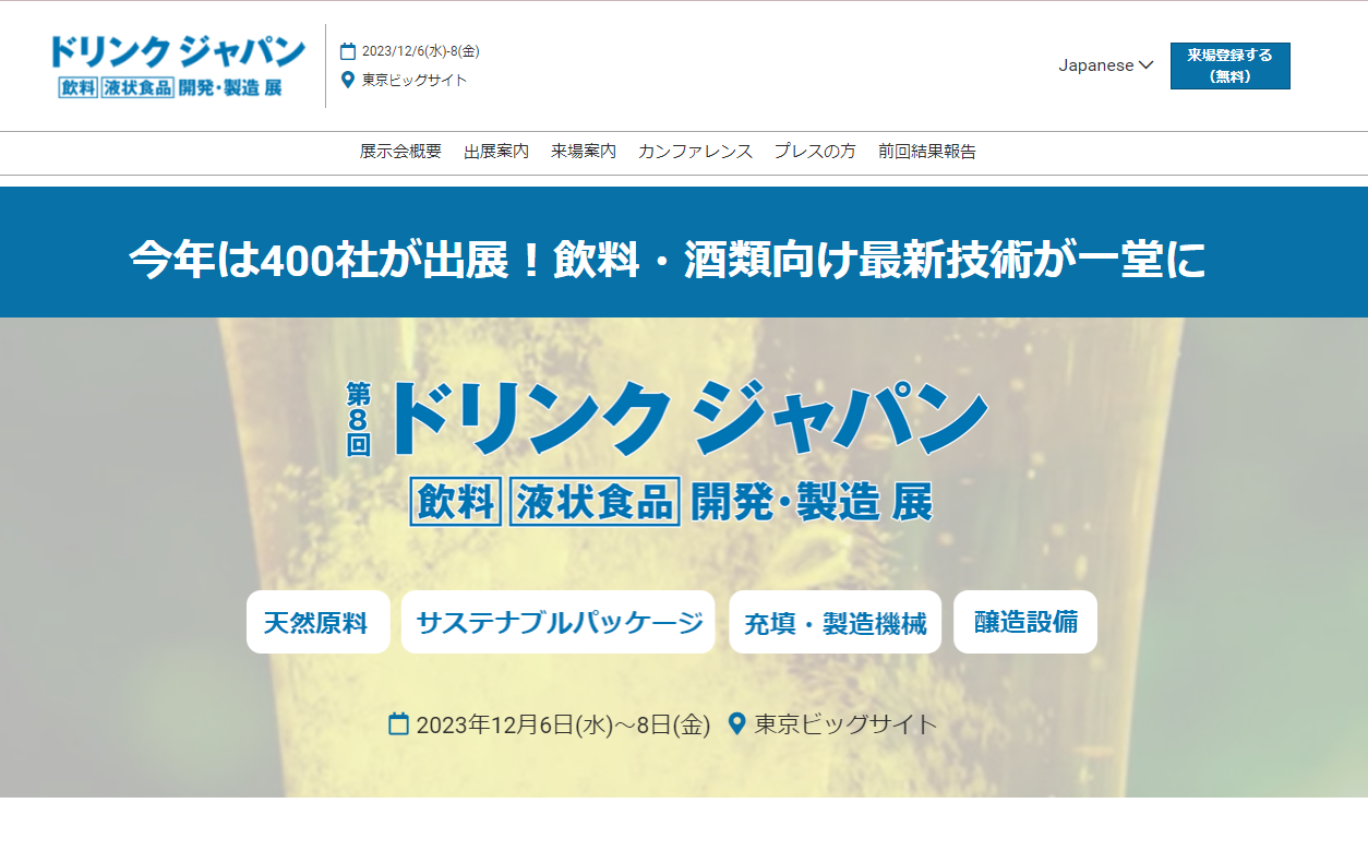 【展示会出展のお知らせ】第8回 ドリンクジャパン(12/6(水)~8(金))