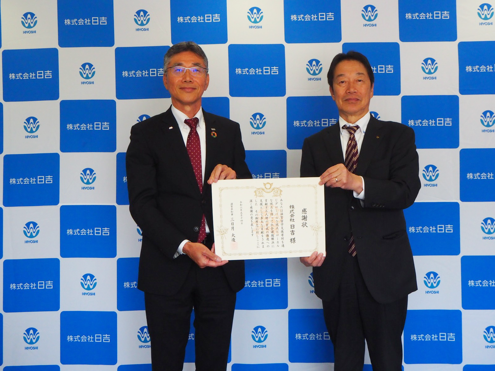 5月14日(火)、福本忠克滋賀県教育委員会教育長より、「未来を描け!滋賀の海外留学応援プログラム」奨学金支援への感謝状を授与されました。