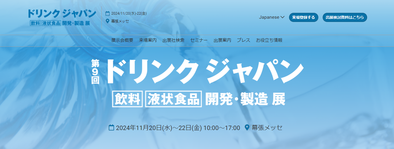 【展示会出展のお知らせ】第9回 ドリンクジャパン(11/20(水)~22(金))