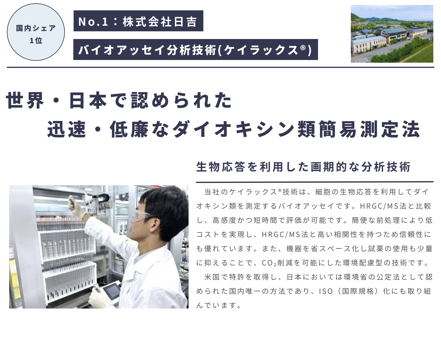 12月20日、滋賀県ホームページに公開されたデジタルリーフレット「実はここにも滋賀の技~ニッチな分野でトップを走る滋賀県企業ガイドブック~」に、当社のダイオキシン類簡易測定法「ケイラックス」が掲載されました。