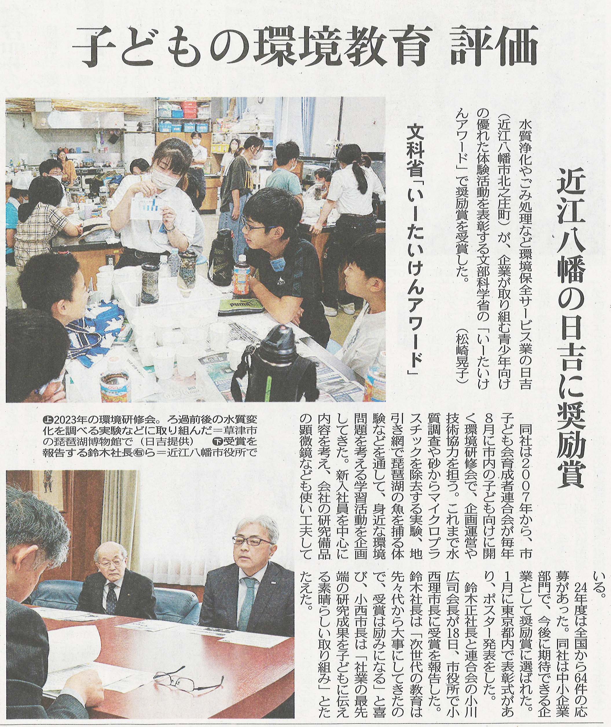 [中日新聞]文科省「いーたいけんアワード」奨励賞