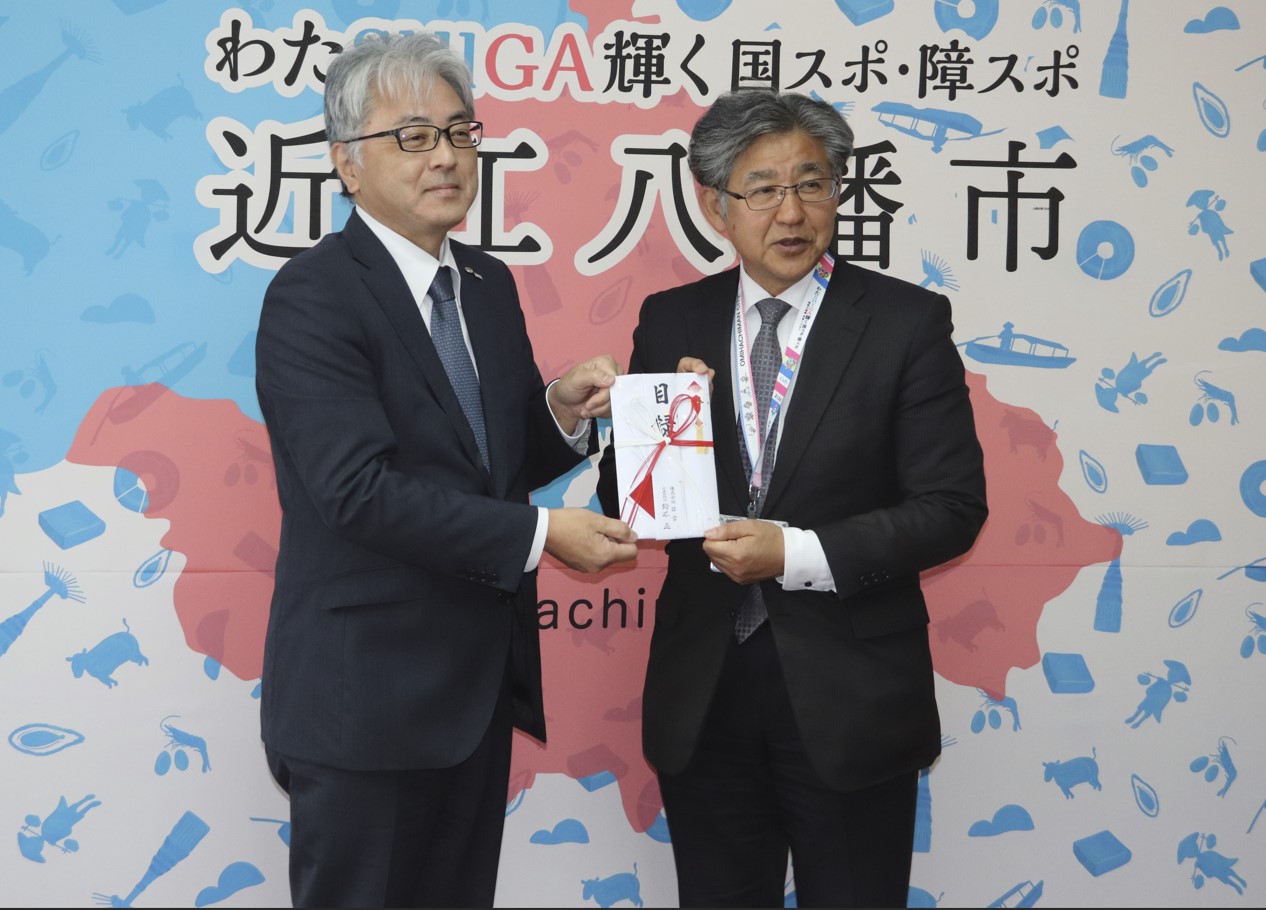 このたび、当社は創業70周年を機会として近江八幡市内を循環している「市民バス(あかこんバス)」の寄贈を行い、近江八幡市役所にて寄贈式が行われ、小西市長から感謝状を受領しました。