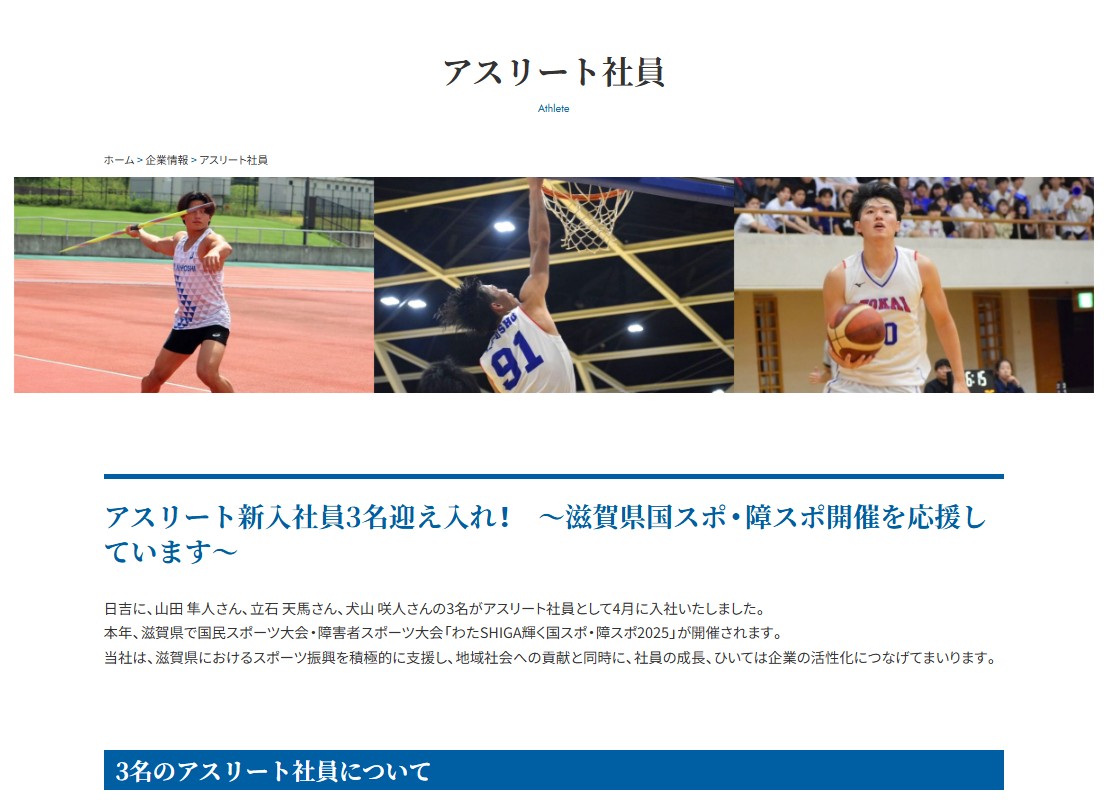 ホームページにて、当社に所属しているアスリート社員の紹介ページを新たに公開いたしました。
