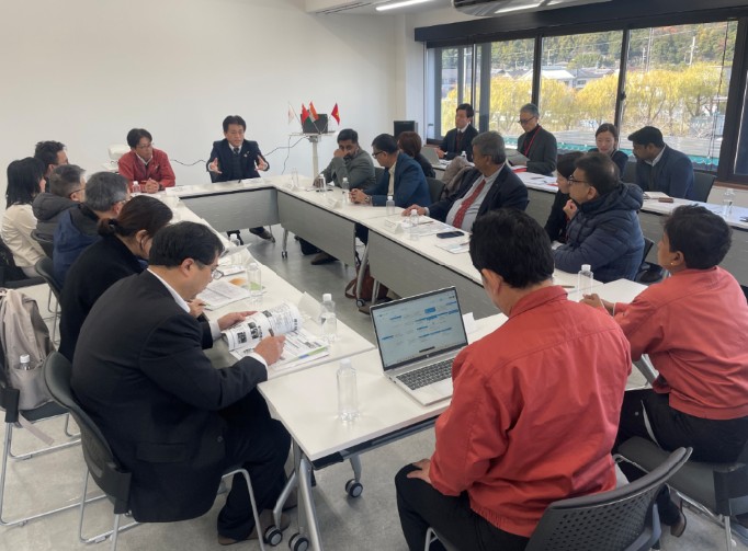 2025年12月18日(水)、日本貿易振興機構(JETRO)滋賀貿易情報センターが招へいされた、アジア各国からの海外バイヤー8名(インド、ベトナム、中国)が当社を訪問されました。